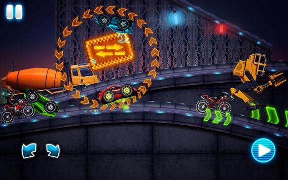 Forget the regular car driving experience! Be obsessed by car mania. Improve racing skills of neon rider. Press the gas pedal to the top speed! Ride on moving constructions and dangerous loops, perform cool flips and car stunts while jumping through rings of fire!