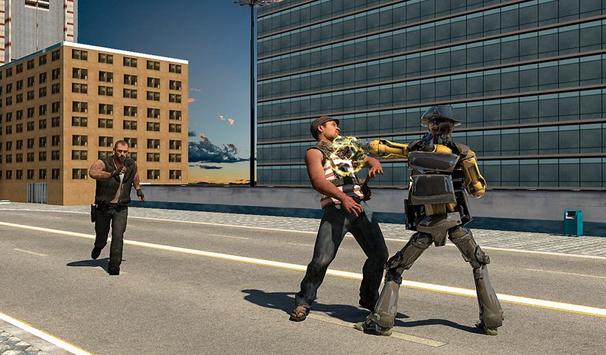 It's time to show everyone who’s gangster criminal robot in liberty crime city by shooting rivals and ruling the streets mafia war gangsters. You are not policeman or boxeo robot. You are a ninja superhero robot in this war crime, who don't need for glory - you have a voracity modern weapons for revenge. You have a big gun and must to kill as much as possible gangsters with guns, knifes and other weapons in open world city battle 3D.
