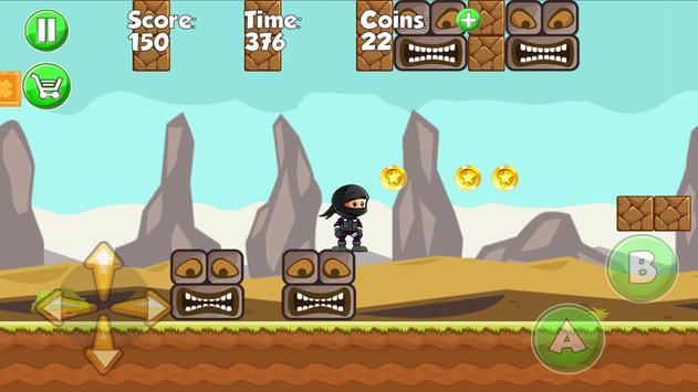 Meet Naruti-Ninja , the main Character of Ninja Go Adventure free game . Take control of Naruti-Ninja and try to across the wild jungle without touching any obstacles , jump over monsters and run the long paths all the way to the finish line . This game is basically about the life of a Ninja kid who is trying to reach the finish line on multiples levels . An Adventurous spirit is a must in order to play this game . On your way , you must be carefull there are plenty monsters , Ninja , and hero on your may so have to be awake . There is a table score so you can challenge your friends and family members on the top table score . Go ahead dowlnload your new game and share with your friends .