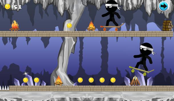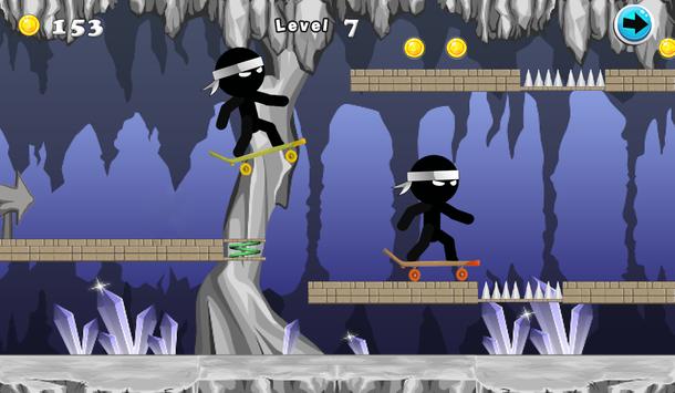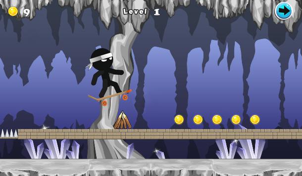 "Ninja Skateboard Adventure" is a adventure game In this game You must Help ninja to avoid obstacles, overcome dangers Just tap the screen in the right time to jump and avoid obstacles, while collecting as many coins as you can to score the highest between your friends!