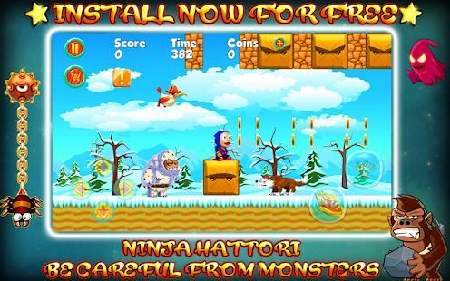 Ninja super hattori adventure is a fighting adventure through obstacles in various worlds.NInja super hattori village run and jump and kill enemies, collect coins challenge your friends who collect more coin and points on this jungle game adventure