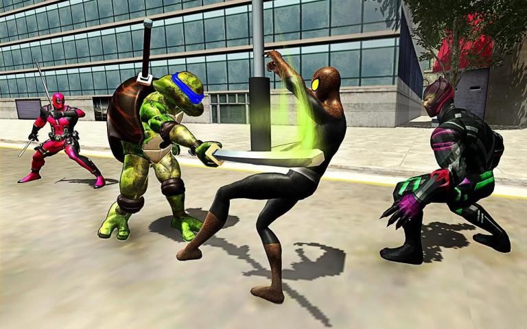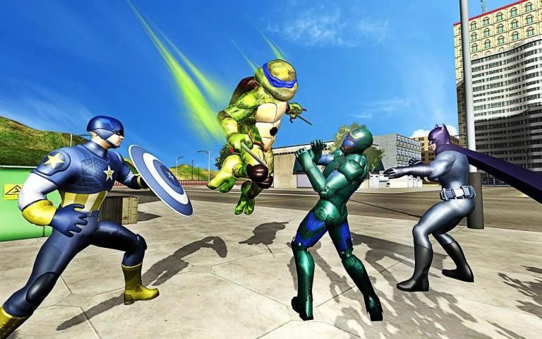 In this game, turtle hero scuffles with all the fabled superheroes of hero games like hammer hero, rope hero, and claws x hero, iron hero, bat hero, captain hero and spider hero. He contests this conflict heroically and brings ragdoll effects to the pack ok dark forces of superhero games. It is a time for you to disguise yourself as turtle hero and clash with superheroes of rescue games in an open world battle. You must act like a real avenger against the bulky pack of ravishing hounds of survival games. Accomplish the role of the defender of the city and demonstrate that you are above all these gargantuan mortals even if they contend against you in an assemblage. Mark the responsibilities of the savior of the city of open world games fresh with the skills you retain at physical and mental level and cause devastation in the lines of your adversaries.