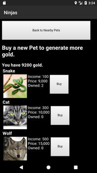 Become a Ninja and explore your surroundings searching for money and experience! Earn money for missions, fight other ninjas and search for pets based on your location in real life to earn money and experience!