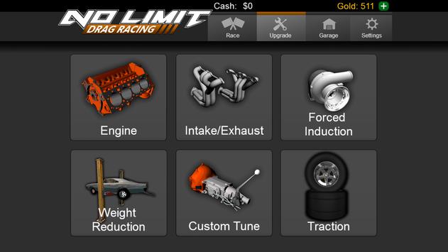 In No Limit you won't survive long running around in a stock car. So we've given you over 50 different modifications to keep up with the rest of the racers. Different engine blocks, intakes, valve trains, exhausts, tires, etc... As you modify your car you will have to keep up on your tune as each modification slightly changes your car's ability. To stay at peak performance, make sure you're constantly testing and tweaking your tune!