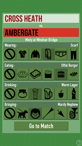 Show your support for the team by carefully choosing pre-match rituals, in the hope of bringing your team some luck. Will you wear your lucky pants? drink a fizzy lager? You decide!