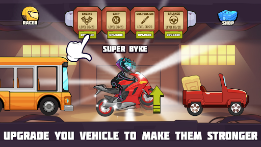 🚲 Upgrade your vehicles in 4 index: Engine, grip, suspension and balance.
