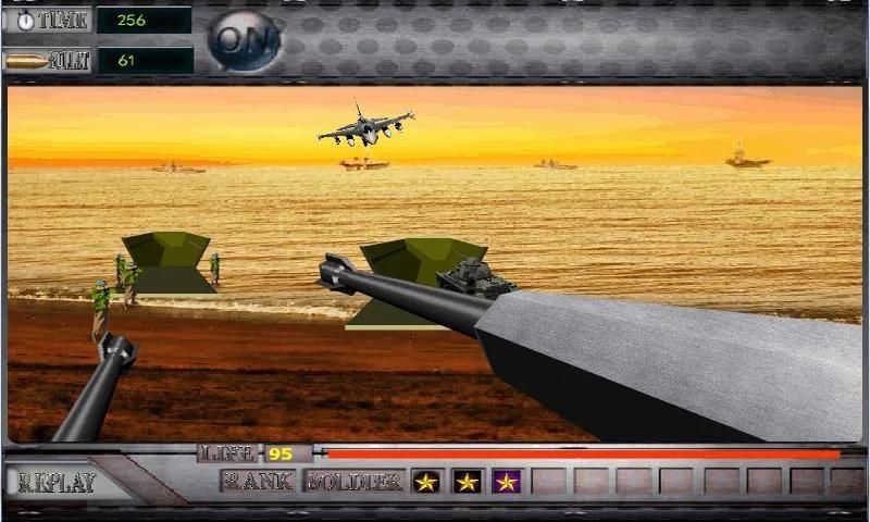 During World War II, a group of German soldiers are trying to stop our army landing on Normandy. The war breaks out and they desperately attack our forces,as an old soldier,you must take down those enemies,kill them all before they occupy the bunker you are staying in. Enemy planes are flying towards you and countless soldiers are landing in front of your bunker.Come on! It's time to take down these enemies and fight for the freedom of the whole world. Try you best to kill them and see if you are qualified to be promoted to general. Good Luck!!