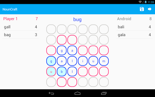 NounCraft is linguistic game, which is analog of russian "Balda"