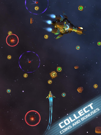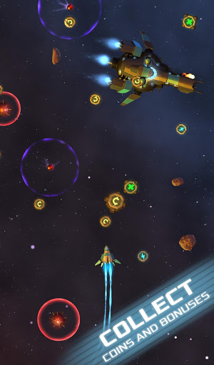 Unlock and upgrade multiple ships with unique abilities such as shield-protection, teleportation or missile burst that will help you get out of critical situations by dodging or destroying your enemies.