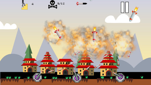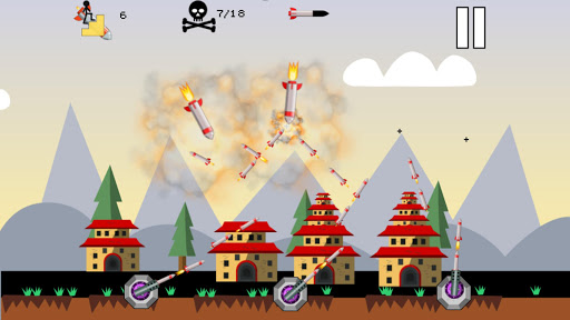 anti-missile rockets at them. Tap at any place in the sky to target and your missile shooters will fire their rockets at that location. When the nuclear missile enters the explosion radius, it will be destroyed. You need to plan your rocket launches strategically to create a