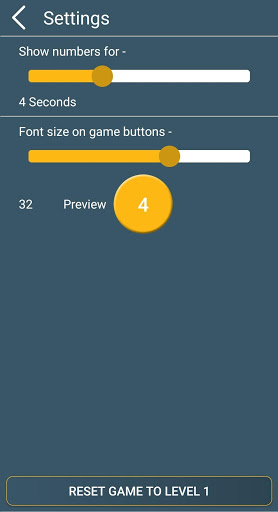 Level start with just 4 numbers/buttons, as you keep win level will get harder.