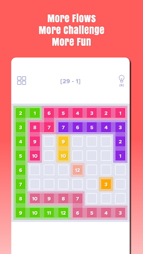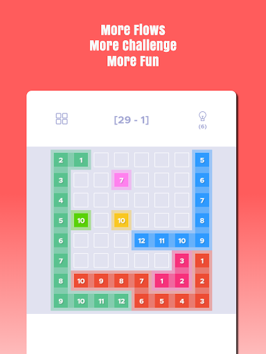 Create Number Flows from N to 1 by dragging a number tile. Tap or reverse drag to shrink a flow. Complete the level by creating all flow and filling the grid. Use Hints whenever stuck. Enjoy!