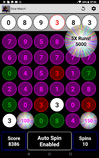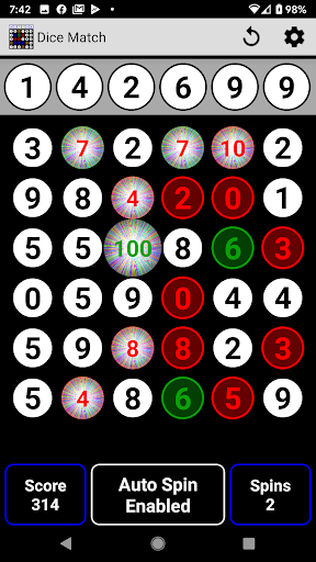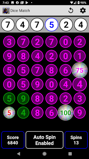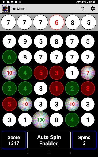 When auto-spin is enabled & a spin does not yield any matching numbers, the game will continue to take spins until there is a valid match.