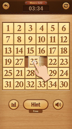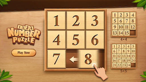 Number Puzzle is a sliding puzzle that consists of a frame of numbered square blocks in random order with one block missing. The objective of the puzzle is to place the blocks in order by making sliding moves that use the empty space.