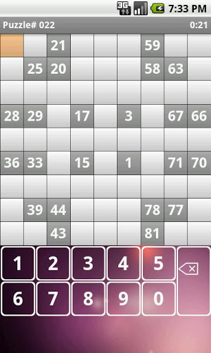 Tired of the same old puzzles like Sudoku? Try Number Snake insteadTired of Sudoku? Number Snake is a fun numbrixhidato like puzzle where you must find the path from 1 to 81 using only vertical and horizontal movements. This version comes with Now comes with a 100 different puzzles in various interesting starting positions None of the boring default layouts anymore.If you have a FC or other issue, please report it with details about your device so we can fix them. We appreciate your patience and will do our best resolve any issues ASAPSaying things like quot;I can39;t see the numbers from 5 Fix it, it can39;t be played without numbersquot; is NOT helpful and will NOT be addressed since it DOES NOT give us any information about why it39;s not working on your particular device. You need AT LEAST a 320x480 HVGA screen resolution screen for this game.Update 1.1.0 has been largely rewritten for better performance and now comes with 100 puzzles and a hintsystemComing soon: Popup keyboard mode for phones with smaller screens