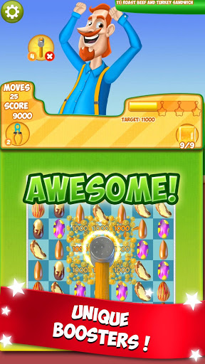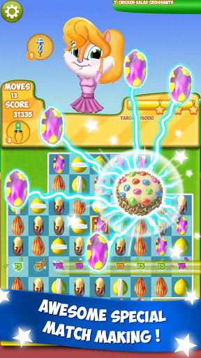 crunch nuts, collect ingredients or complete other objectives and get rewarded with yummy recipes in Nut Crunch - the SWEETEST and the YUMMIEST match-3 puzzle game on mobile!