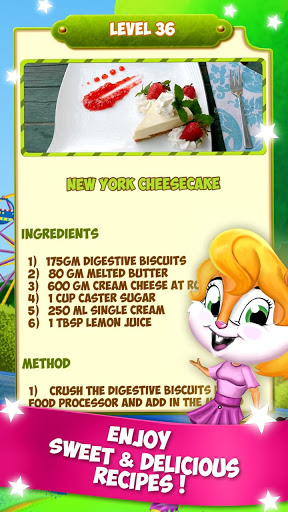 Each level is coupled with a sweet and yummy recipe as a reward for your good
