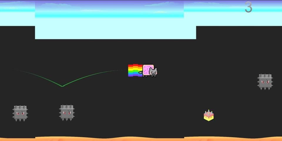 Control nyan cat through the tunnel and try to collect as many points as you can! Can you beat your friends? Collect the cakes and coins for points while avoiding the enemys and don't hit the floor or the ceiling! More characters are coming soon so be sure to save up your coins!