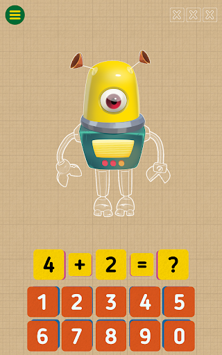 Learn mathematics (addition, subtraction, multiplication) with "Robots"! Solve examples and assemble your own robot in the Workshop.