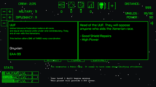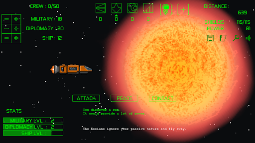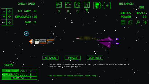 OESE is about your little ship, traveling alone through space trying to survive as best as it can to find a new home. Along the journey you come across different encounters with different outcomes depending on your decision. You can either try a passive approach if you're feeling peaceful, you can try to contact or trade with whatever oddity you've crossed paths with or you can go full offensive and fire a missile to try and steal their power!