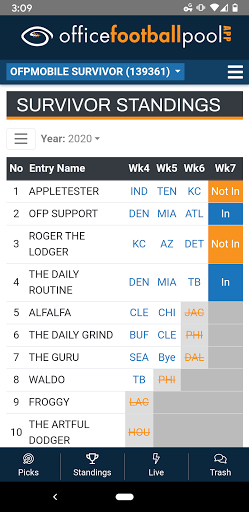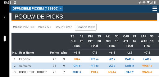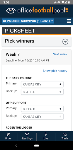 OFP Mobile is a companion app for users of the OfficeFootballPool.com website.