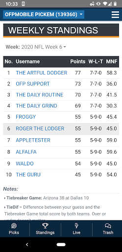 The app provides all you need for the most critical weekly tasks, namely: getting your picks in on time and checking your progress in the standings.