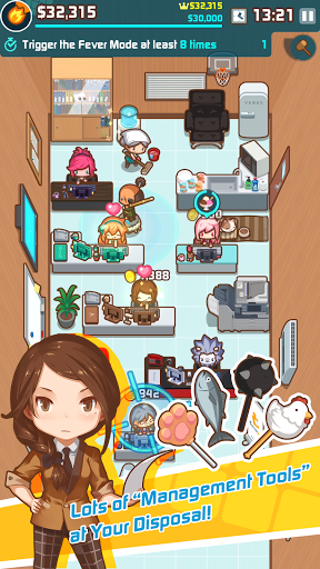 The company your father built is going bankrupt. As a boss, you have a chance to go back in time to save your company. Manage your office with an iron fist or let your employees slack off without consequence. How you manage your office will determine your company's success. Google Play Store Featured Game!