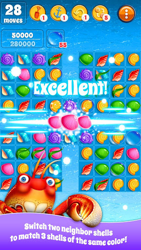If you like relaxing on the beach, swimming and collecting beautiful seashells, this new “match 3” game give you a lot of fun. Cute Crab invites you on a trip to tropical islands! Collect sea treasures in a rows,