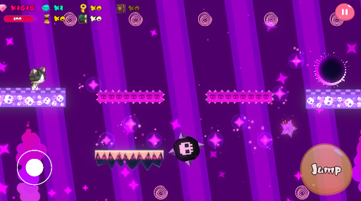 there are many traps to avoid like a laser beam, saw, black hole, thorns, hidden platform, etc.