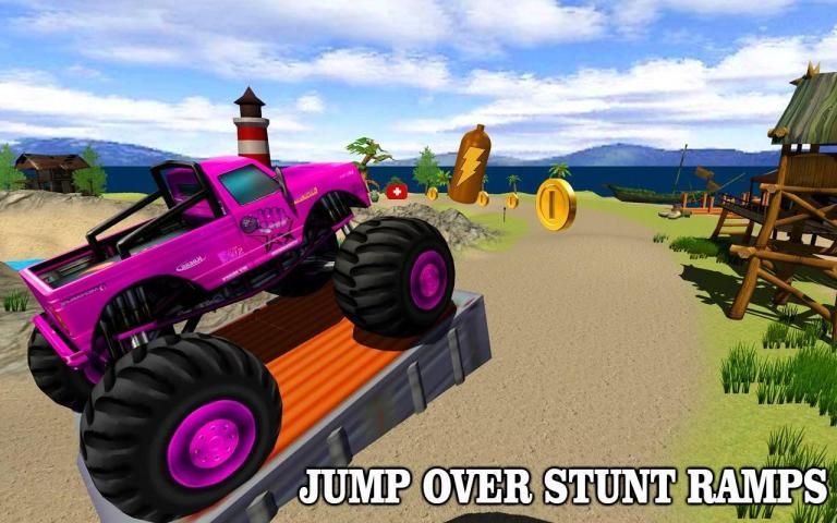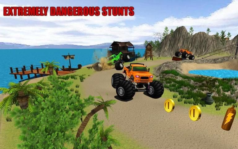 Grand monster, trailer trucks and monster truck extreme off road drivers are gathered for a furious off road monster truck clash. Monster truck race begins at go. Start collecting the health packets and coins to beat monster truck racing competitors. Leave behind all the monster truck racers. Achieve maximum thrust by putting extreme pressure on the throttle, get the fullest acceleration of the monster truck. Fill the garage with multiple high quality monster trucks. Best way to perform the speed stunts in jungle environment is to drive a grand monster truck.