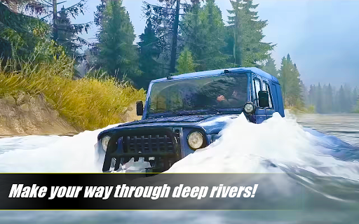 Offload driver starting drive of the heavy jeep-like cruiser in 4x4 offroad games are rally driving for jeep in off-road driving games.