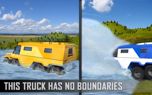 Forget 4x4 SUV or offroad jeep truck driving and maneuver this 8x8 wheels russian centipede truck on curvy roads. This ATV Avtoros Shaman has top speed of 50 mph like an asphalt truck and can climb steep 45 degree on big rocks. Drive through thick mud on sloppy terrain and steep hilly roads. This amphibious vehicle has powerful revved up engine with 160 horsepower. Asphalt monster truck can traverse anything with great suspension. Latest invention in big euro truck lets you enjoy offroad racing experience with heavy machinery like mountain truck. Relish master driving on world’s most difficult curvy road terrains under extreme conditions. Become a real offroad driver and steer gigantic vehicle with its 8 tires in huge open world environment. Enjoy interactive gameplay like impossible car that can run underwater or on mountain top bumpy tracks.