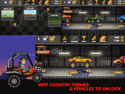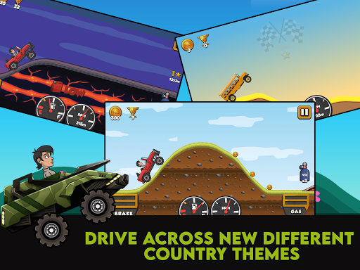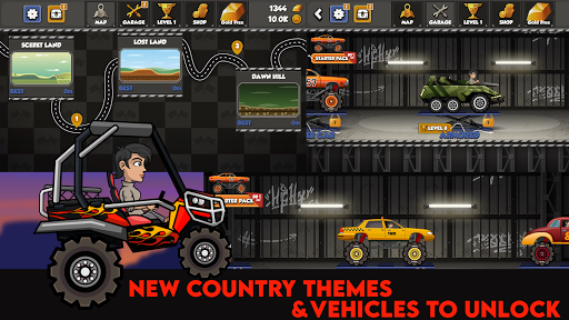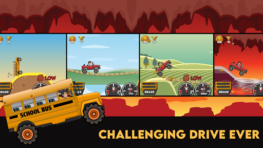 The main objective is to drive your vehicle within hard hill environment and try to score the highest score by covering maximum distance as much as you can without damaging your car. Train your hand and eye coordination with hill climb racing and have fun playing it for hours. Face the challenges of dangerous hill climb racing environments with many different vehicles to unlock. Collect coins to upgrade new vehicles and cover long distances.