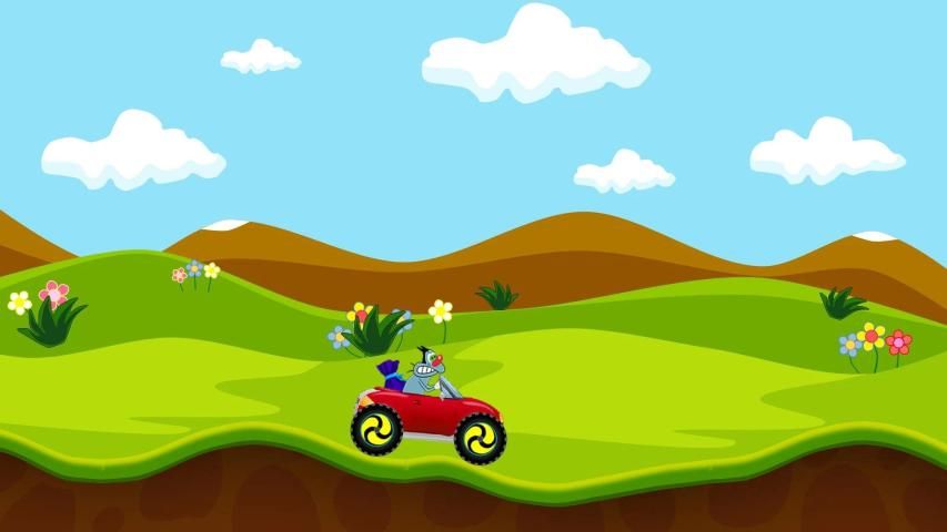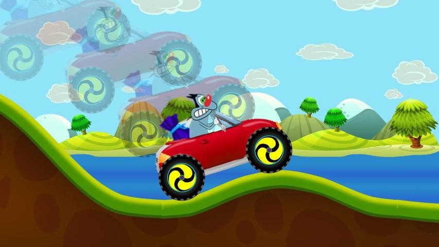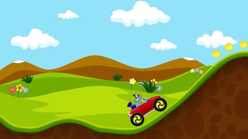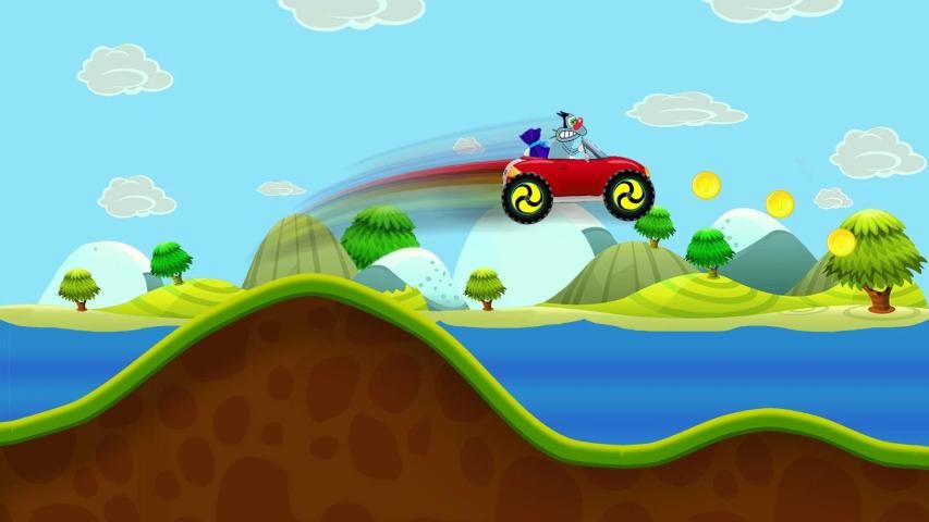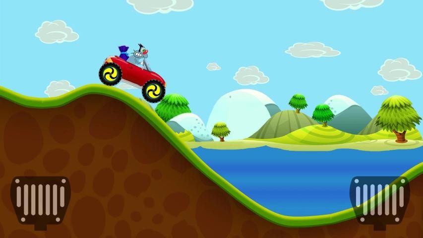 Oggy is taking a ride among the mountains. This is a new and very entertaining game. Oggy drives the car into nature and enjoys its time. You have to drive it without falling or colliding with hills and stones along the way. try to Collect coins and avoid blocks, and slowdown the speed at the downhill. In addition to collecting fuel or gasoline to continue driving. And when jumping from the hills, and do not let the car crash the houses or fall down.