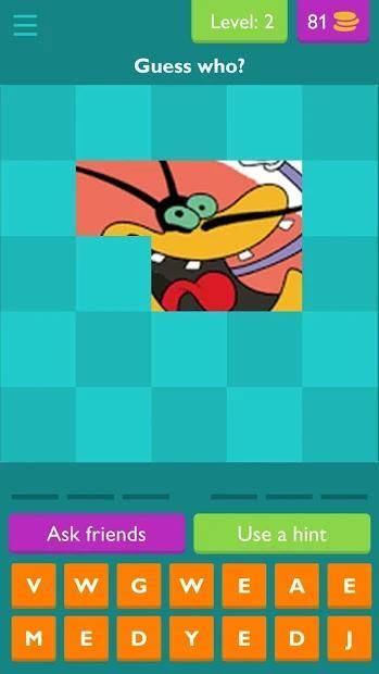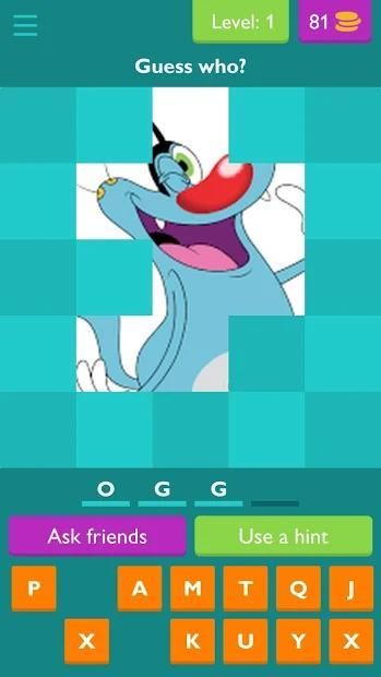 It contain oggy & cockroaches all video character picture of the character all you have to do is guess the character name