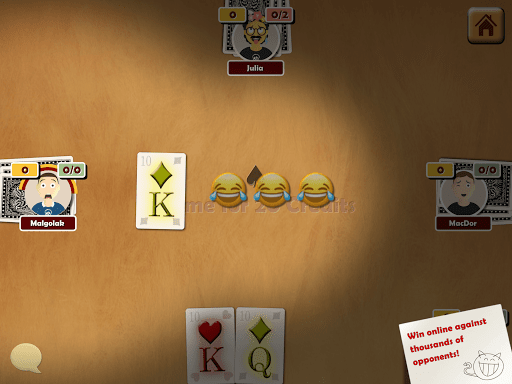 Descended from the Whist family of card games (including Bridge, Hearts, and Spades), Oh Hell is similar to the Rage and Wizard card games. Play anytime, anywhere - at breaks, on the go, or at home. With just a tap, join thousands of online players or play offline against the computer.