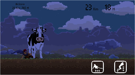 Dodge the obstacles you encounter along the way; jump boxes, rocks, slide under stubborn cows that block your way, be careful with suicidal birds and break the fences, that there are no barriers to the field.