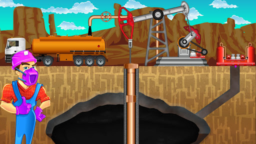 Start the miner process by selecting the terrain on which you want to start drilling. Reach the site with your whole construction worker crew, Place transmitter on the ground and throw waves to locate the oil reserves under desert or sea surface. Steer your heavy machinery to the oil extraction site for construction and builder work. Operate drilling crane to drill the oil field well and place pipes to takeout crude oil form reserves. Build a Pumpjack on the oil well by using best builder and maker skills. Start the Pumpjack engine for oil extraction from reservoir. Fill multiple oil tanker truck and drive the truck to the petroleum refinery factory.