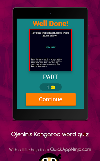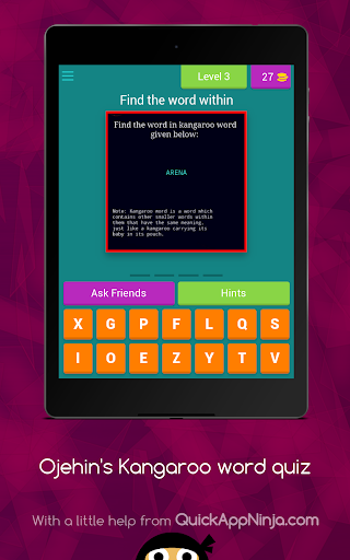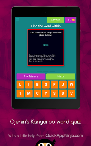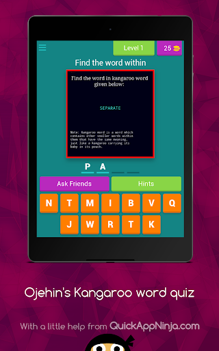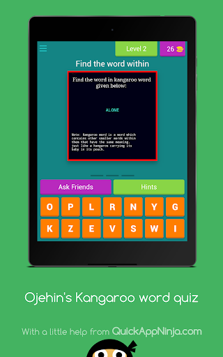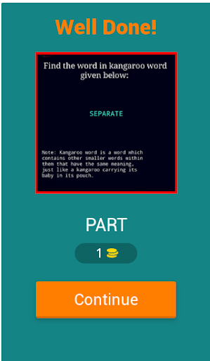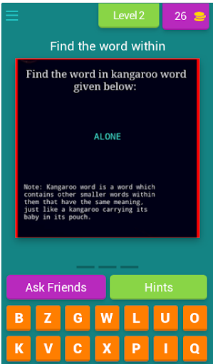 Each level will have one Kangaroo word, you need guess the smaller word within these given Kangaroo words in the same order and with the same meaning.