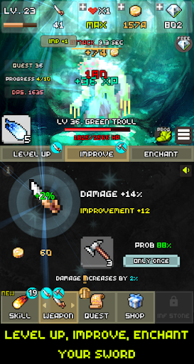 - Grow your sword by Level Up, Improving, Enchanting, Evolving and Making it Legendary
