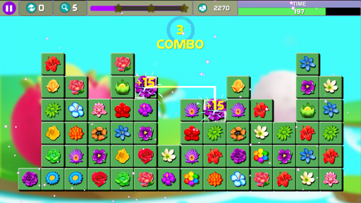 - Connect 2 cards with similar flowers together with up to 3 straight lines to remove them.