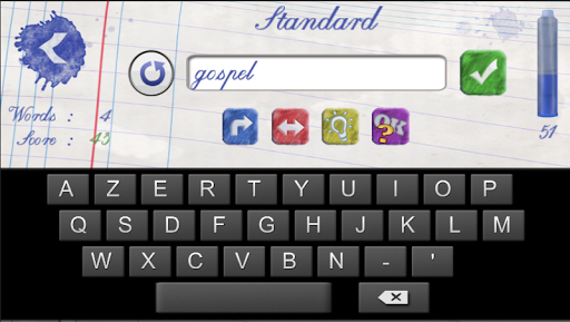 You can test your spelling in different modes of exercises "Classic" (play for a defined time) or "After" (spell the most words without error).