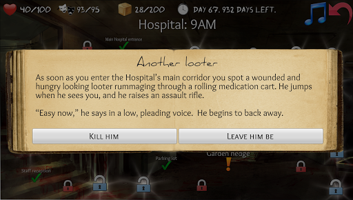 There are 1000s of unique and professionally written events to encounter and even more tough decisions to make! All decisions have consequence; small decisions early in the game can have profound effects later! Meet other survivors and help or exploit them. Plenty of moral decisions will question how far you would go to survive and affect your final score... can you survive without losing yourself?