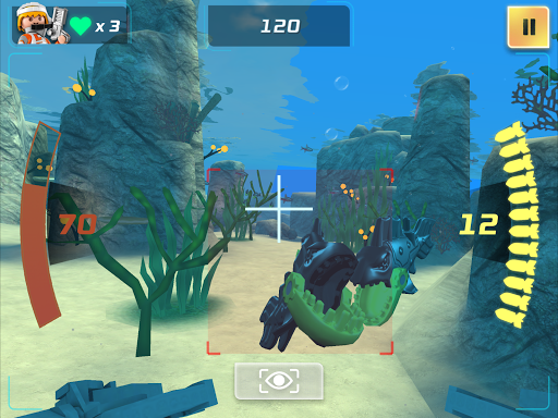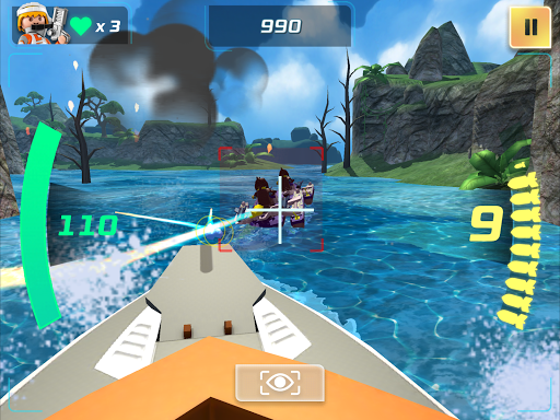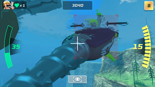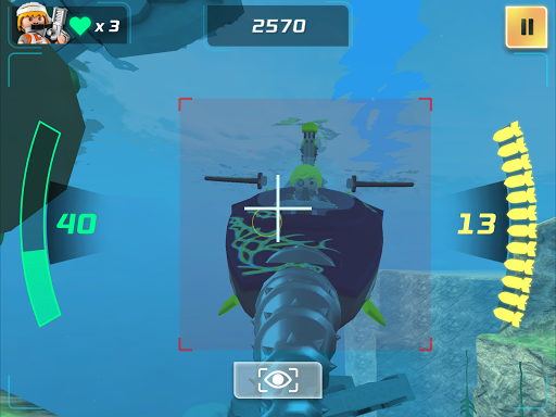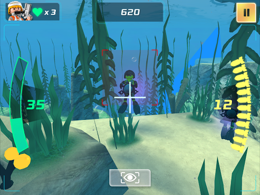 Jump into the Sub Bot as it searches the depths for perilous robot piranha fish and Team S.H.A.R.K. divers with heat seeking missiles. Look all around the sub - you never know which direction the bad guys will come from. Tap the screen to fire back and watch out for power-up crates filled with health, ammo and extra lives. Somewhere in the deep, you will find Captain Fisheye in his Drill Destroyer – stop him before he can cause a quake!