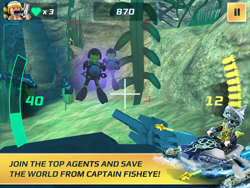 • POWER-UPS: Armed with missiles, tap to fire at the Team S.H.A.R.K. operatives and aim at the spinning power-ups