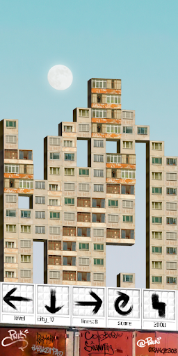 Standard tetromino figures in PNLK consist of 3d blocks with various windows and balconies, it makes a player not just want to complete a line, but also to place blocks perfectly, to make the real looking building. Cities and its architecture changes on each level.