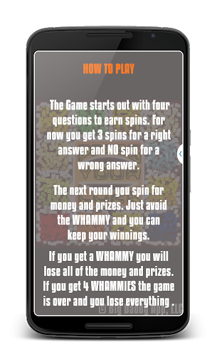 Press Your Luck, Designed after my favorite TV game show when I was growing up. The online versions are drawn out with things other than Game Play, so I'd figured I'd build my own. Answer questions to earn spins. Spin to win big Prizes and money. Avoid the Whammy. Have Fun. Keep checking back for up dates.
