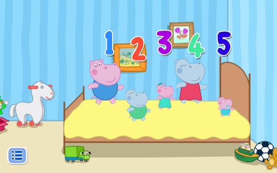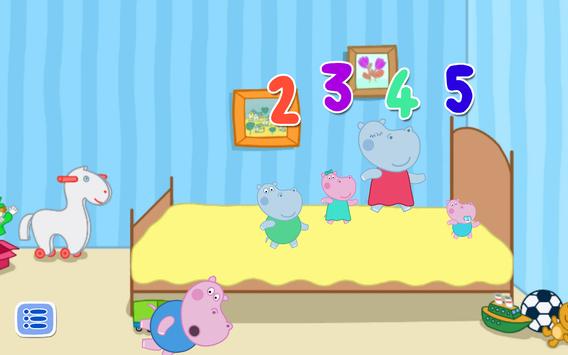 Our free educational games are always ready to entertain you and your children. And now joined the collection of useful and funny songs in English. Today we offer you to sing together with us. Counting - Five little monkeys jumping on the bed - an excellent choice for the little ones. Baby Hippo and her friends love to sing kids songs. And you?