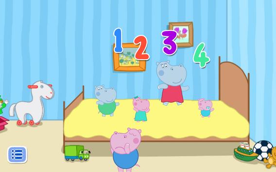 Five little monkeys jumping on the bed - it's Counting training for children. Kids songs - one of the best formats in which there are educational games for children. Counting in the form of light and fun to teach your child to count to five. And in this we can help our beloved baby Hippo and her friends.