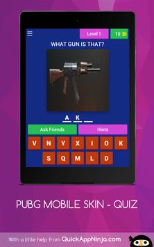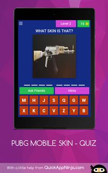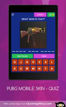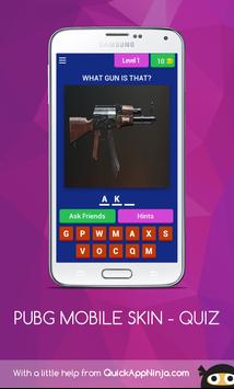Do you know a lo about PUBG Mobile? Try out this app and test just how much you know! -120 Levels -New and Old Skins -Weapon Skins PUBG MOBILE SKIN QUIZ! Try Now Free